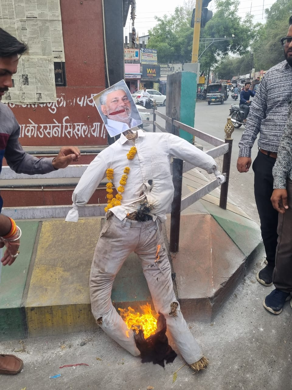 रतलाम: केंद्रीय मंत्री पुरुषोत्तम रूपाला का पुतला फूंका।